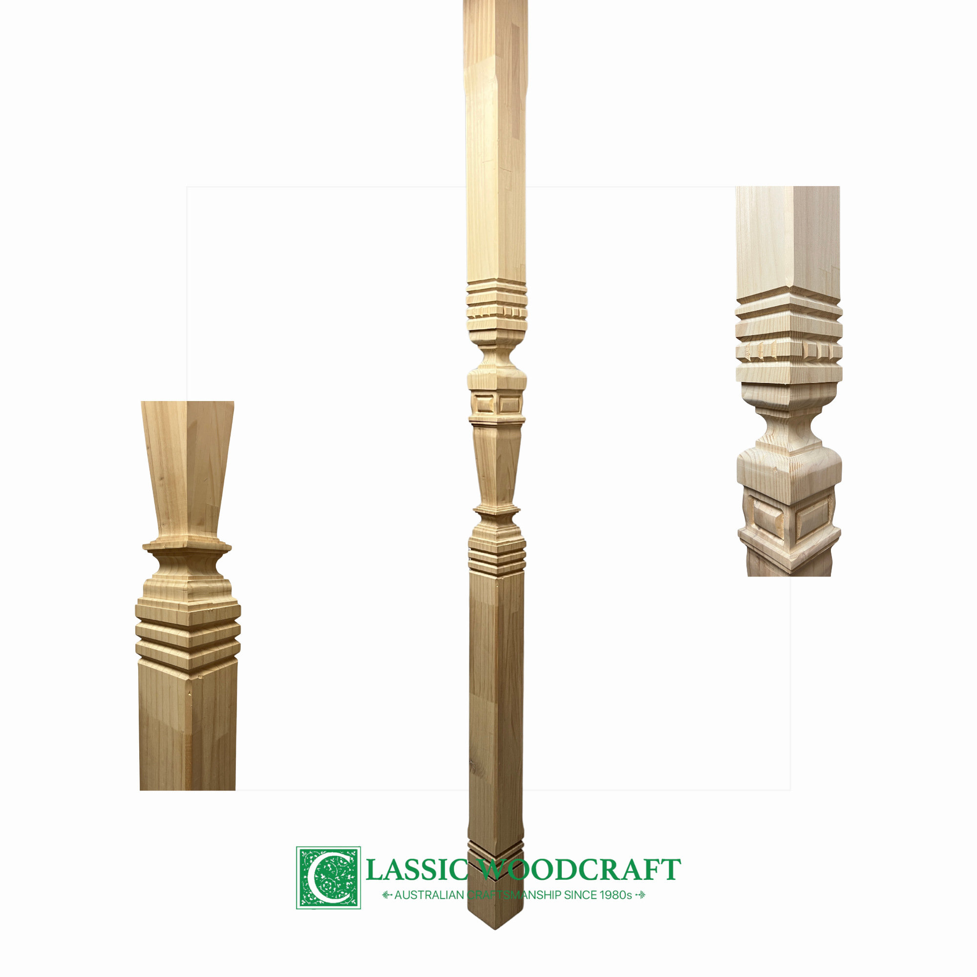 - Traditional turned profile suited to heritage homes